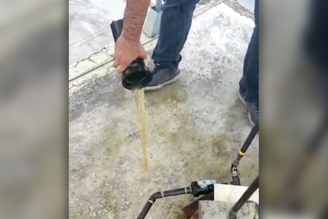 El líder vecinal señaló que el agua llega así de la calle y prueba es que los filtros de los tinacos y lavadoras terminan «negros» o se tapan.