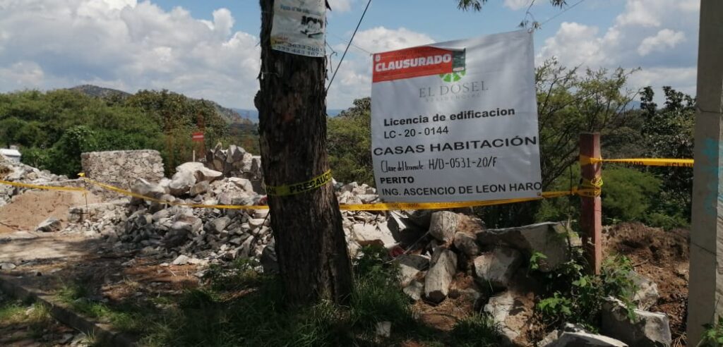 El fraccionamiento Dosel, suspendido por orden judicial, fue clausurado en septiembre por el Ayuntamiento de Zapopan tras la denuncia del Comité Salvabosque de no contar con licencias municipales. Ahora no podrán continuar la construcción ni el municipio entregar permisos mientras no se resuelva de fondo el juicio de amparo.