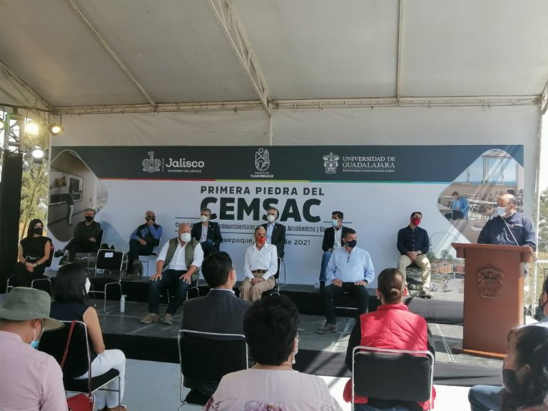 Autoridades estatales y universitarias colocaron la primera piedra del Centro de Estudios Medioambientales y de Servicios Académicos y Comunitarios de la Universidad de Guadalajara