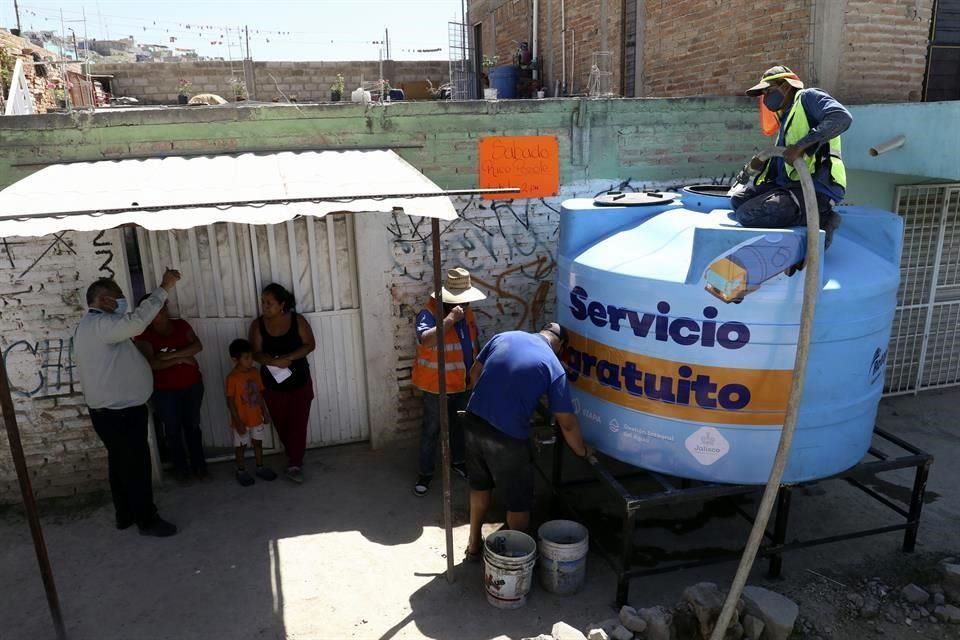 Ayer, en Vistas del Centinela, en Zapopan, se estaban instalando estos macrotanques donde las personas puedes acudir a llenar cubetas o tambos para su consumo.