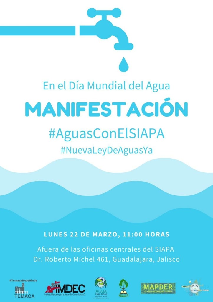 Vamos a exigir Agua Para la Vida y Agua para Siempre. Si vives desigualdad en el acceso y abastecimiento del agua en el Área Metropolitana de Guadalajara te invitamos a participar, exigir y movilizarnos.