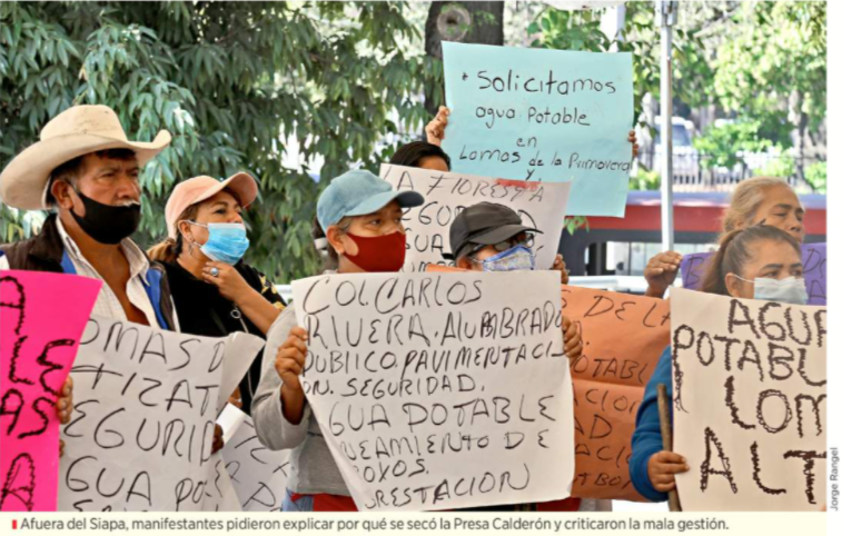 En diferentes pronunciamientos, los inconformes exigieron al Gobernador Enrique Alfaro aclarar por qué motivo se acabó el agua de la presa «Calderón» de manera intempestiva, además reclamaron que la estrategia emergente del Siapa no satisface las necesidades de la población.