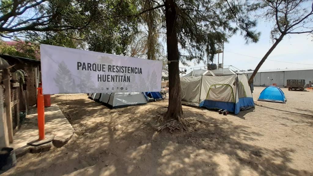 Los colonos de Huentitán, con apoyo de activistas del colectivo por la defensa de parques públicos y de la Federación de Estudiantes Universitarios (FEU), instalaron casas de campaña y ahí elaboran sus alimentos. Realizan guardias para evitar que ingresen los empleados de la desarrolladora y mantienen el bloqueo de la puerta de ingreso del terreno, por la avenida paseo del Zoológico 501