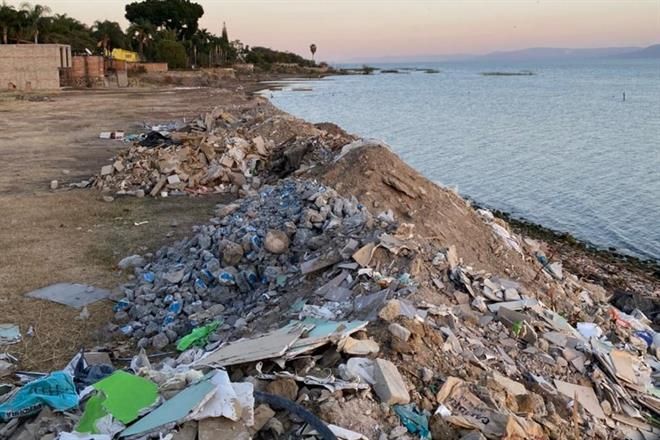 Guadalajara, México (07 abril 2021).- Con toneladas de escombro, un terreno ubicado a la orilla del Lago de Chapala ha sido cubierto, sin explicación alguna, por parte de empresas constructoras que invadieron el lugar, denuncian vecinos de la zona.