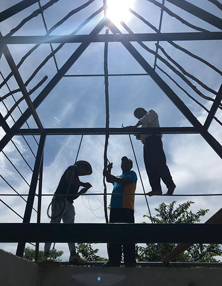 Durante dos años, y en conjunto con la Fundación Loyola y la Universidad Iberoamericana Ciudad de México, se realizaron diversos trabajos en la comunidad, desde el análisis del suelo hasta el diseño de las casas y el uso de materiales adecuados para evitar que volvieran a derrumbarse en caso de presentarse otro sismo. Para ello, refirió Cano Díaz, fue necesaria la ayuda de traductores y la autorización de los jefes de la misma comunidad. El resultado fue la entrega de 30 casas con estructura de acero, ladrillo de adobe y techo de palma, diseño que tomó en cuenta la tradición constructiva y las condiciones climatológicas de la zona. Además, se instalaron 11 sistemas de captación de agua pluvial, filtros y nueve cocinas tradicionales de horno Comixcal con estufas ahorradoras de leña. También se logró capacitar a más de 30 integrantes de las familias beneficiadas y a 63 albañiles en procesos de construcción antisísmica, se impartieron talleres de fortalecimiento social y se capacitó a seis mujeres ikoots y sus familias en carpintería para la hechura de puertas y ventanas de madera y penca de palma.
