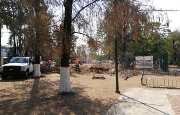 Se dictaminó el derribo de 20 árboles, de los cuales ya se tumbaron 14 y serán reemplazados con especies endémicas que tengan mayor resistencia a plagas y al temporal de sequía. (Por Héctor Escamilla Ramírez)