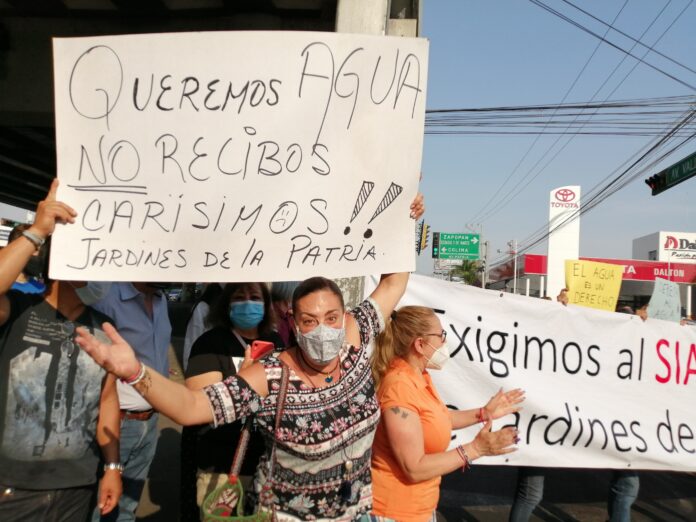 Vecinos del municipio de Zapopan de las colonias Jardines de la patria y Patria Universidad se manifiestan al cruce de avenida Patria y Avenida Vallarta.La causa de la manifestación, es para exigirle al SIAPA les brinde un servicio el cual están pagando y no reciben desde hace 4 meses, los cobros bimestrales hacienden a 3 mil pesos.«El problema en sí lleva tres meses estamos sobreviviendo en comprar pipas y cada vez nos las dan más caras, antes costaba $700 la pipa de 10,000 litros y como te digo el recibo del SIAPA haz de cuenta que no está pasando nada, llega de 2000 a $3000 bimestrales, como si nos estuvieran surtiendo el agua».El cierre a la circulación permanecerá Al filo de las 11:30 de la mañana para que evite la zona.Vicente Torres