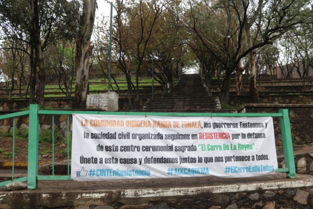 “La comunidad indígena Nahua de Tonalá, los guerreros tastoanes y la sociedad civil organizada, seguimos en resistencia por la defensa de este centro ceremonial sagrado El Cerro de la Reina únete a esta causa y defendamos juntos lo que nos pertenece a todos”.