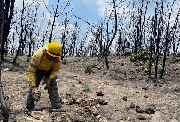 “Se planteó hacer un proyecto de restauración del suelo en las zonas de alta severidad (del incendio) porque en esos lugares es más lento el proceso de restauración natural, se va a dar, pero es más lento. Vamos saliendo de una temporada bastante crítica y compleja de los incendios, todavía teníamos incendios a principio del mes de junio, pero conforme se fueron dando lluvias empezamos a aprovechar para empezar a trabajar, llevamos al momento 225 obras de conservación de suelo, las presas y barreras de piedra acomodada, de material vegetal muerto”, dijo Josué Oliverio Alvarado.