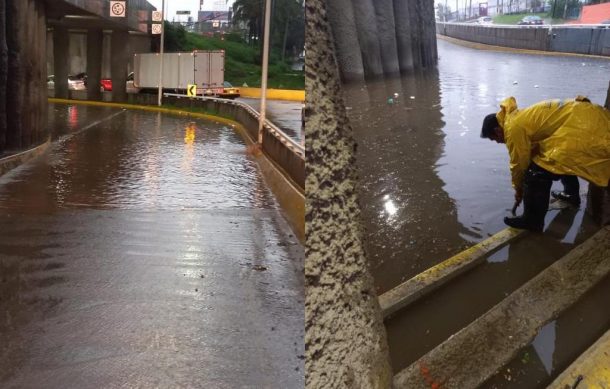 “No se tiene un cárcamo, no se tiene un sistema de bombeo, sólo la red de drenaje por medio de una rejilla de manera natural, pero si son volúmenes importantes de agua los que caen, pues sí se mantiene entre hora y media, dos horas más o menos, la inundación”.