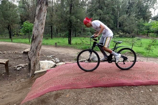 - Para que no se degrade la tierra con el impacto de las bicicletas, Zapopan ha colocado tapetes en las pistas habilitadas. Foto: Ismael Ramírez