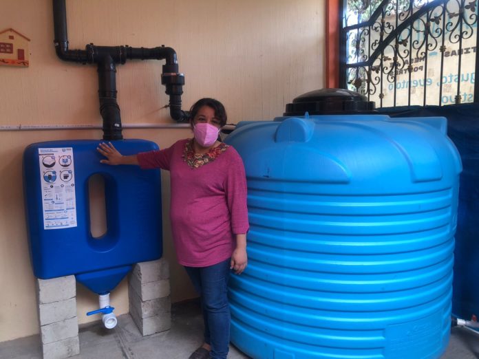 A ella la invitaron a formar parte del programa “Nido de Lluvia” hace más de una semana. Acudió a una reunión, fueron a inspeccionar que su casa cumpliera con los requisitos y se lo instalaron al día siguiente. No tuvo que pagar nada, sólo le pidieron acreditar la propiedad de la casa y hacerse cargo del mantenimiento. El sistema tiene una tubería instalada desde la azotea, se almacena en un primer contenedor hasta llegar al tinaco.“Ya de aquí el agua con cloro tiene un botecito con las pastillas de cloro, pasa por este tubo para ya a la bomba pasarla al aljibe y eso también es otro filtro para ya tener el agua limpia, que nos dicen en la junta que es para todo, para bañarnos, para lavar trastes, ahora sí hasta para lavarse los dientes a gusto”.En su familia, con seis integrantes, tardan más de dos semanas en terminar el almacenamiento por la cultura de cuidado del agua que tienen desde hace tiempo.De acuerdo con la coordinadora de Gestión del Territorio, Patricia Martínez Barba, de esta prueba piloto con 600 viviendas en esta colonia, llevan un avance de 108 en dos semanas de instalación.Esta prueba piloto cuenta con un presupuesto de 11 millones de pesos para 600 viviendas, sólo con recurso público. Más adelante sí se buscaría un esquema compartido. Se trabaja con organismos internacionales para obtener mayor presupuesto.“La siguiente fase con los siete mil, sí estamos revisando mecanismos de gestión que nos permitan potencializar los recursos para llegar a más personas beneficiadas y que esto no implique un obstáculo, para que las familias se puedan hacer del beneficio. Nos queda claro que es un programa que tiene que apoyar a las familias más desfavorecidas, con mayor crisis de agua”.El costo de cada sistema es de 19 mil pesos, incluida su instalación.