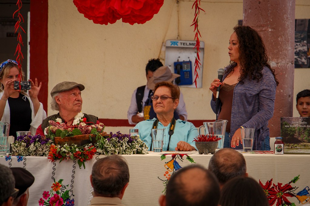 Martha Álvarez, originaria de Palmarejo, durante su participación durante la visita de Víctor Manuel Toledo Manzur, titular de la Semarnat a la comunidad de Temacapulín. Foto: Mario Marlo