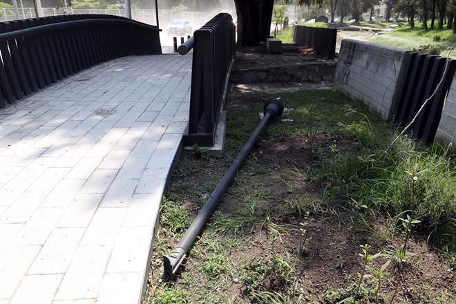 También se detectó que la corriente arrancó, literalmente, lámparas y algunos bolardos tuvieron daños.