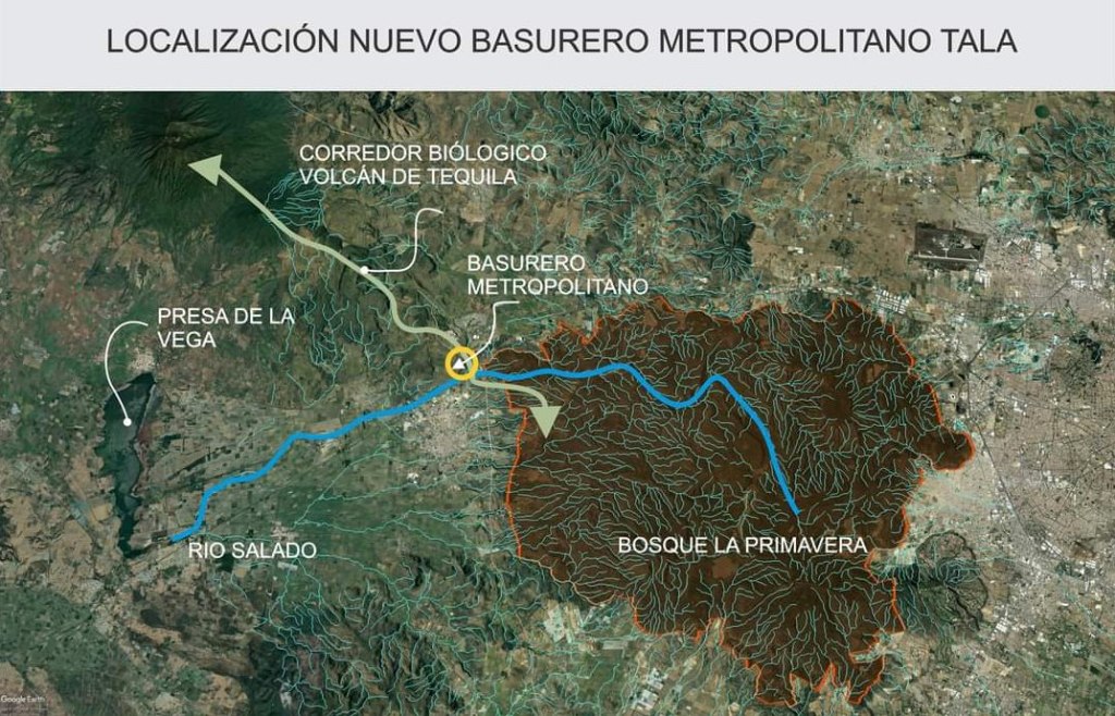 El nuevo vertedero pretende instalarse en la zona correspondiente al corredor biológico del Área Natural Protegida del Bosque de la Primavera y el Volcán de Tequila y se encuentra cerca del Río Salado, un vínculo hidrológico entre La Primavera y La Presa de la Vega, así lo denunció la organización Anillo Primavera, quienes se han sumado a la exigencia de alto al vertedero.