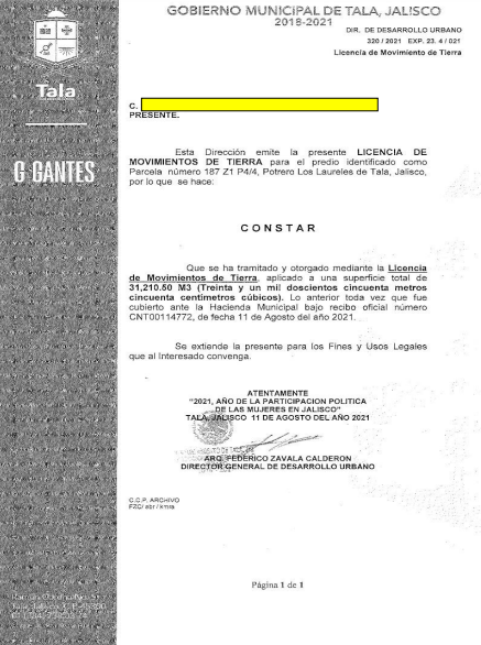 Según los planos entregados por un particular al Ayuntamiento de Tala, la bodega por la que se pidió el permiso está en el mismo punto donde se planea edificar la planta industrial de separación, según el mapa del proyecto aprobado por la Secretaría del Medio Ambiente y Desarrollo Territorial del Estado.