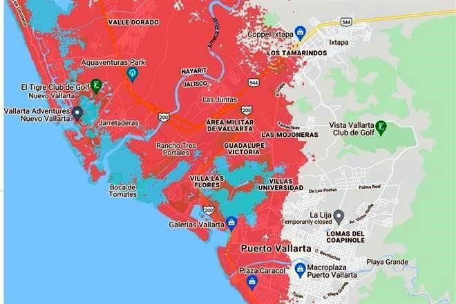 Esto significa que desde el Aeropuerto Internacional hasta el Centro Universitario de la Costa quedaría inundado el destino de playa más importante de Jalisco.