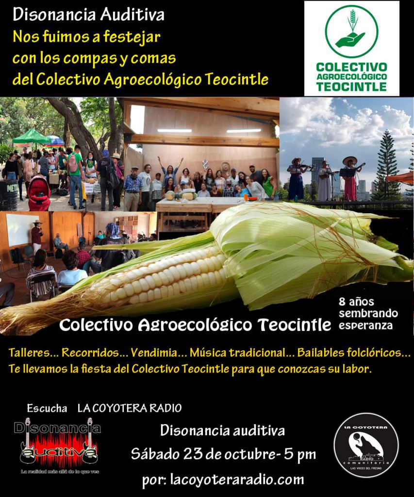 Mañana sábado platicamos con las y los compas de Colectivo Agroecológico Teocintle, en el marco de su octavo aniversario donde haremos un recorrido sobre su historia, trabajo agroecológico y ambiental, además de revivir los momentos de este festejo, recorrido por el Parque Agroecológico Zapopan, su cede y platicamos con algunos productores orgánicos y artesanales que participaron en el evento.