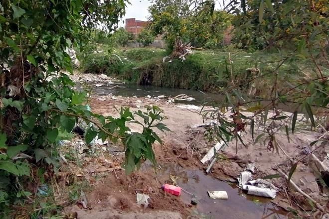 - Cauce sucio que corre a un costado de la planta de tratamiento de Aguas Residuales Río Blanco. Foto: Mariana Quintero