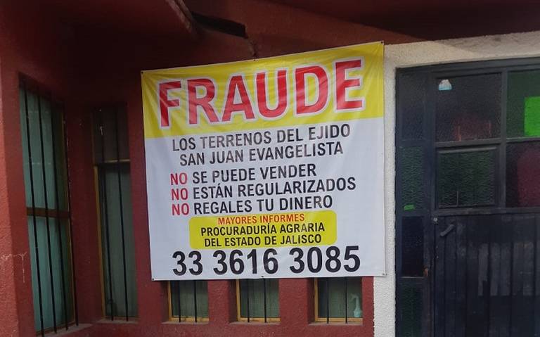 Hoy un letrero advierte al llegar “Fraude” y cita: “los terrenos del ejido San Juan Evangelista No se pueden vender, no están regularizados, no regales tu dinero”. El teléfono para denunciar ante la Procuraduría Agraria es 33-36-16-30-85.