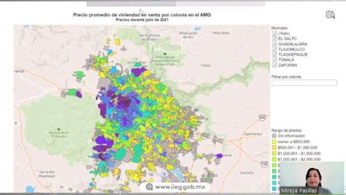El precio promedio de la vivienda en la Zona Metropolitana de Guadalajara es de seis millones 158 mil pesos, de acuerdo con el estudio que realizó el Instituto de Información Estadística y Geográfica de Jalisco (IIEGJ) al revisar siete plataformas de ventas, detalló su director general, Augusto Valencia López.