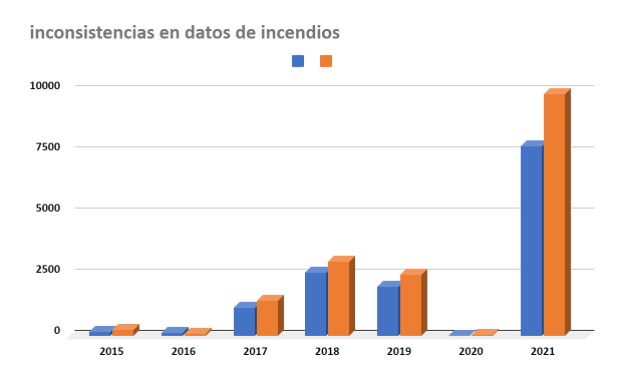 La comparación de ambos grupos de resultados muestra la diferencia numérica que poseen ambas instituciones, lo cual impide llevar un registro teóricamente cabal con respecto a las amenazas incendiarias que padece el Bosque bajo sus supervisiones. Estas diferencias cuantitativas indican tanto una falta de seguimiento a la actividad o archivos relacionados al Bosque, como una incertidumb