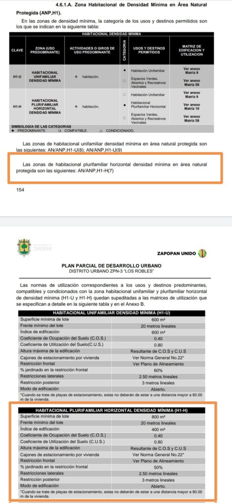 El Plan Parcial de Desarrollo Urbano de Zapopan, reconoce que el predio es parte del área natural, pero lo clasifica como zona habitacional y permite que se construyan hasta veinte casas dentro del bosque, por lo que el Comité Salvabosque exige una veda inmobiliaria para evitar que continúe la destrucción ambiental en el terreno de dos hectáreas.
