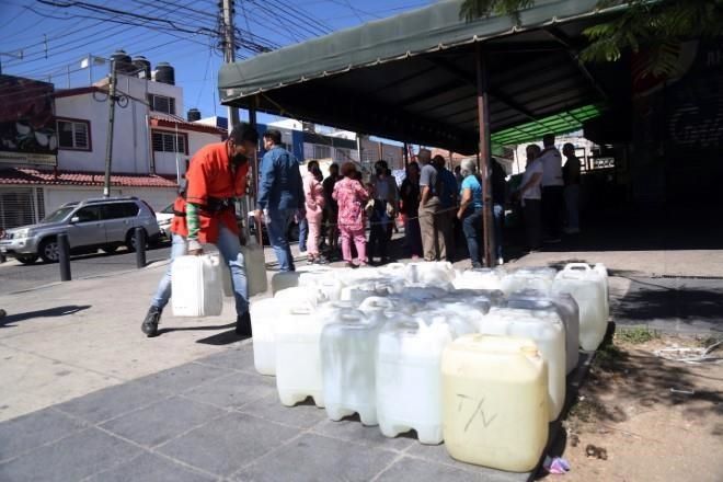 - En la Estación del Tren Ligero no hay agua y trabajadores la acarrean del Parque de la Colonia. Foto: Renee Pérez