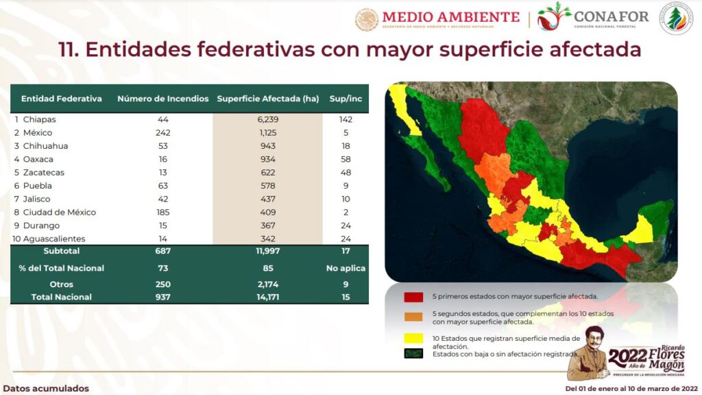 En el resultado total de incendios forestales, Jalisco registró 42 que dañaron 437 hectáreas, ubicándose en el lugar número siete del país.