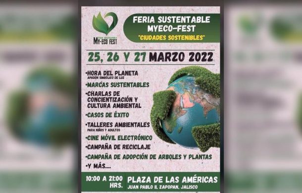 El próximo viernes, sábado y domingo en la Plaza de Las Américas de Zapopan se llevará a cabo la feria sustentable MyEco-Fest, donde habrá charlas de concientización y cultura sustentable, talleres ambientales para niños y campañas de reciclaje.