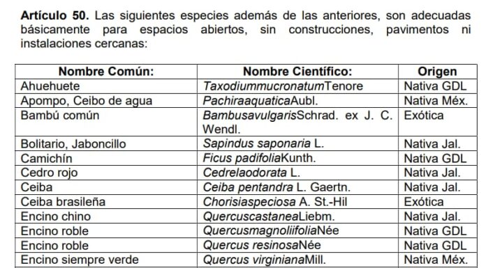 El propio Reglamento de Áreas Verdes y Recursos Forestales del Municipio de Guadalajara (https://t.co/Tdkv8Qwfua), en su artículo 50, señala que la ceiba es una especie que solo es adecuada para «espacios abiertos, sin construcciones, pavimentos ni instalaciones cercanas», y recomienda otro tipo de árboles, arbustos y foliares, que sí tienen condiciones para desarrollarse en espacios reducidos, como debajo de las vías del tren.