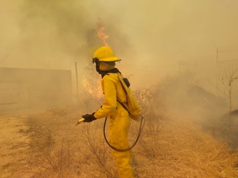 Hasta el momento solo se quema maleza y pastizal pegado al área de Lomas del Centinela, aunque hasta el momento no hay riesgo de afectación a las viviendas cercanas a la zona, según detalló la coordinación de protección Civil y Bomberos.