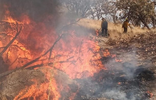 Las fuertes rachas de viento y lo agreste de la zona han complicado el combate de las llamas e incluso los brigadistas se apoyan de la aeronave Tláloc para realizar descargas y contener el avance del fuego.