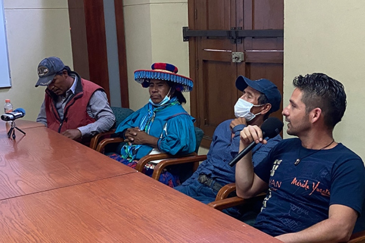 “Empezamos nosotros a ver un helicóptero volar en la zona de los lugares sagrados que tenemos en la comunidad indígena de San Lorenzo de Azqueltán. Nos llamó la atención. Empezamos a verlo seguido, día tras día, y dijimos ‘¿qué está haciendo?, ¿qué podemos hacer?’. Andaba en las partes donde se tienen los lugares sagrados, donde se realizan ceremonias que tienen los compañeros tepehuanos y los compañeros wixárikas en compañía de la lucha del territorio. Ahí, nosotros miramos que era algo ilegal porque no se había dicho, no había ningún permiso”, describió el secretario de Bienes Comunales de San Lorenzo de Azqueltán, Mario González, en rueda de prensa.