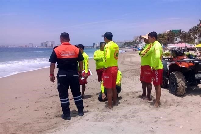 - Protección Civil en playa de Puerto Vallarta. Foto: Cortesía