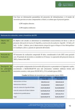 De acuerdo con el análisis costo-beneficio del proyecto «Adecuación de la presa El Zapotillo y construcción de acueductos: Zapotillo – El Salto y El Salto – La Red – Calderón, para el abastecimiento integral de agua en bloque al Área Metropolitana de Guadalajara, Jalisco«, documento al que Líder Informativo tuvo acceso, las obras tendrán 10 meses de duración a partir de este año, y en 2023 comenzará a operar la infraestructura para transportar 3 mil litros de agua por segundo.