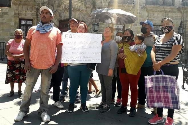 - Alrededor de 10 personas, de comunidades indígenas, se manifestaron ayer frente a Palacio de Gobierno. Foto: Grupo REFORMA