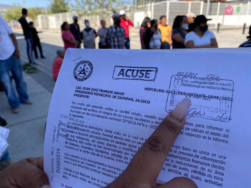 De acuerdo con los documentos entregado a las y los habitantes de estas viviendas, la acción forma parte del “Proyecto de delimitación de la Zona Federal Arroyo Grande”, y pese a que se establece que la Secretaría de Gobierno del Estado de Jalisco, a través de su titular, Enrique Ibarra Pedroza tenía conocimiento del plan desde el 21 de abril de 2022, estos no fueron notificados de acuerdo con sus testimonios.