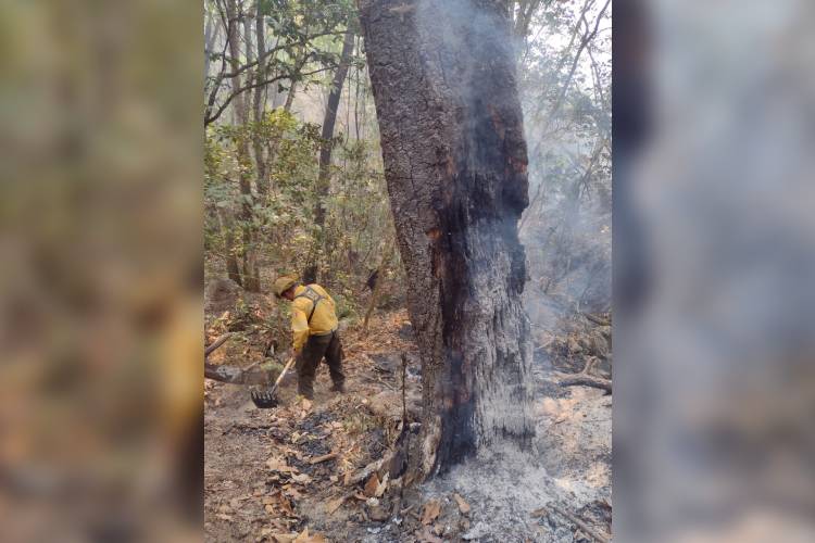 Precisó que los brigadistas de los tres órdenes de gobierno y organizaciones civiles continúan con las labores de enfriamiento y liquidación del siniestro.