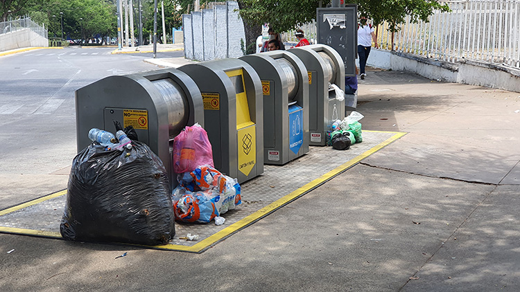 Tras recorridos hechos durante el fin de semana, NTR pudo comprobar que puntos instalados a lo largo del paseo lucieron llenos de basura. En ellos se observaron bolsas repletas de todo tipo de desechos, a lo que se sumó que algunos están vandalizados.