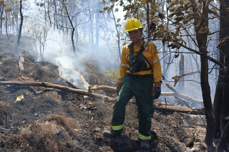 Casi 90 brigadistas de los tres niveles de gobierno combaten el incendio forestal que se registra en el Cerro de La Bandera, dentro del Área Natural Protegida del Bosque La Primavera.