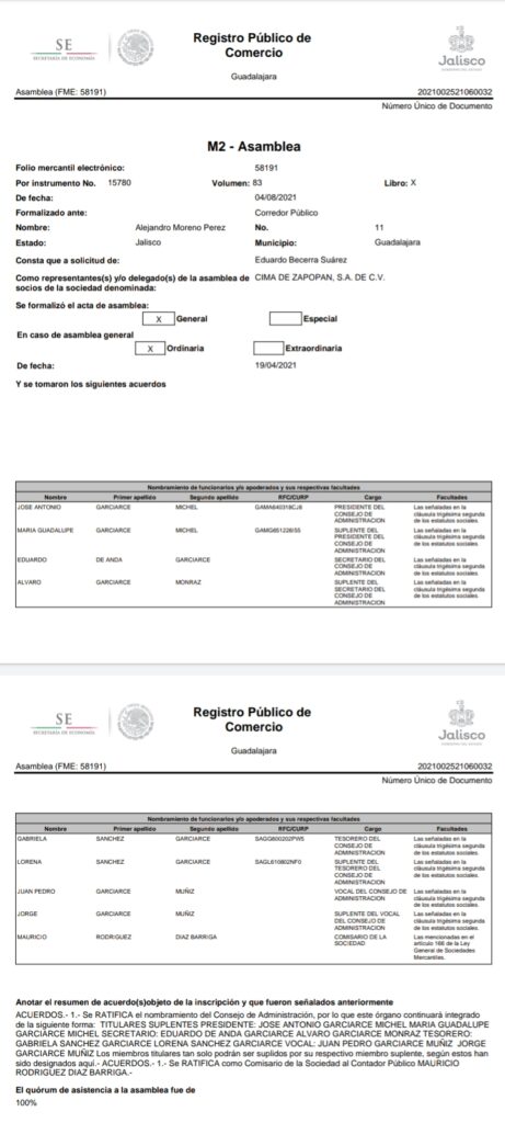 Según documentos del Registro Público de Comercio, la empresa que desarrolla el fraccionamiento, «Cima de Zapopan, S.A. de C.V.», es propiedad de la familia Garciarce, dueña de la refresquera AGA.