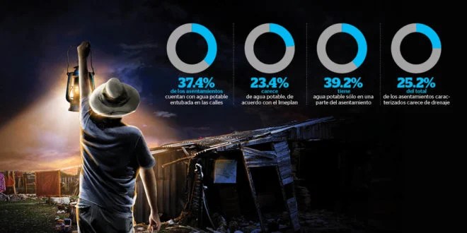 Por otra parte, el servicio de energía eléctrica regular con medidor se encuentra disponible en el 80.4 por ciento de los asentamientos pero, de esos: “El 29.1 por ciento cuenta con el servicio en todas las calles, 38.4 por ciento en la mayoría de las calles y 32.6 por ciento en la mitad de las calles o menos”.
