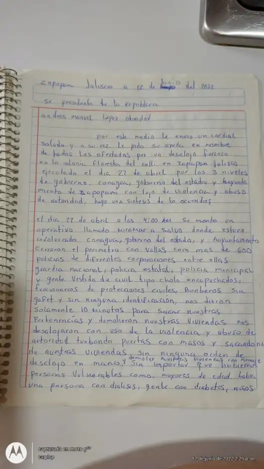 Desde el 27 de abril de 2022 nadie sabe explicarle a Arturo López, el representante de varias familias desalojadas al poniente de Zapopan, porqué en operativo tripartita la Comisión Nacional del Agua, el Gobierno de Zapopan y elementos de seguridad del Gobierno de Jalisco, no eligieron primero informar y luego reubicarlas con dignidad.