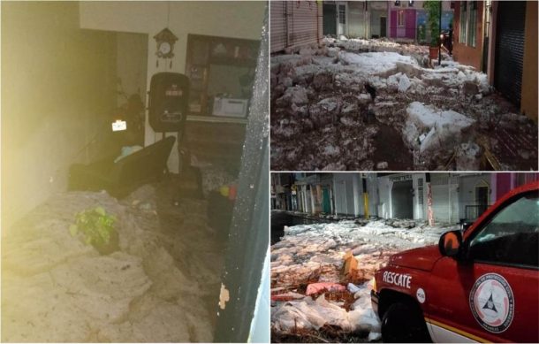 Las corrientes provocaron que el granizo se acumulara y en algunas calles alcanzara hasta 60 centímetros de altura.