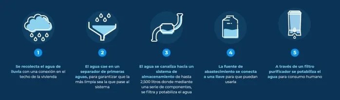 De acuerdo con la información oficial del Siapa, el sistema consiste en la conexión del techo de la vivienda para canalizar el agua de lluvia hacia un almacenaje y, mediante una serie de componentes, limpiar el agua para obtener una fuente de abastecimiento de agua de buena calidad y potable.