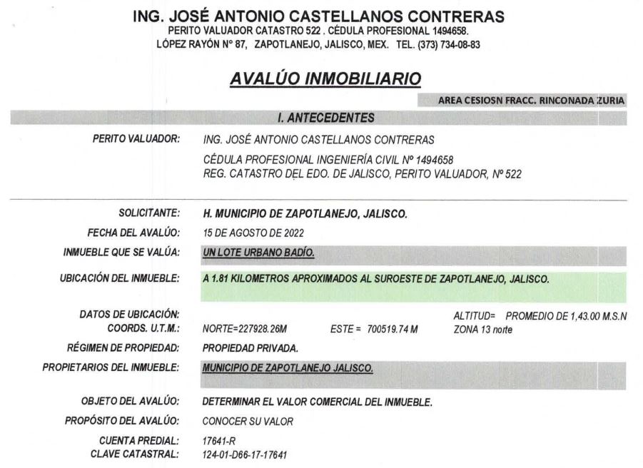 Como si se tratara de un predio rústico, el Ayuntamiento de Zapotlanejo busca rematar un terreno que originalmente sería destinado para un parque al interior de un fraccionamiento, gracias a un avalúo realizado por el Director de Obras Públicas que se presenta como perito independiente.