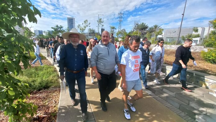 «LA VERDAD (ESTOY) MUY CONTENTO DE ENTREGAR UN PROYECTO MUY IMPORTANTE PARA LA CIUDAD QUE PUDIMOS DESARROLLAR EN CONJUNTO CON EL AYUNTAMIENTO DE ZAPOPAN Y LA SOCIEDAD CIVIL ORGANIZADA; EL GOBERNADOR ARISTÓTELES (SANDOVAL) INICIÓ EL PROCESO DE RECUPERACIÓN JURÍDICA DE LOS PREDIOS, A NOSOTROS NOS TOCÓ CONCLUIR ESTE PROCESO LEGAL; HAY TODAVÍA ALGUNOS PREDIOS QUE ESTÁN EN BATALLA LEGAL, CUANDO MENOS YO TENGO IDENTIFICADAS 10 (HECTÁREAS) QUE ESTÁN TODAVÍA EN DISPUTA, PERO HAY HERRAMIENTAS JURÍDICAS, Y LOS INSTRUMENTOS DE PLANEACIÓN QUE GARANTIZAN QUE EN ESTA ZONA NO PUEDE CONSTRUIRSE YA NADA MÁS, QUE LO VAMOS A MANTENER COMO PATRIMONIO AMBIENTAL DE LA CIUDAD».