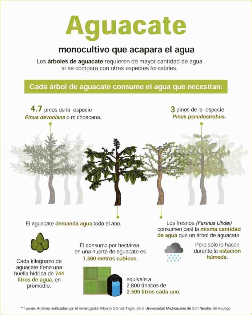 Michoacán y Jalisco podrían estar en la antesala de ese destino, advierte el investigador de la Universidad Michoacana de San Nicolás de Hidalgo, Alberto Gómez Tagle, especializado en el estudio de los efectos ambientales del aguacate, en especial en el tema del agua.