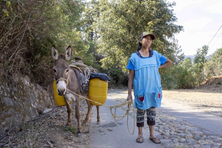La falta de agua es crónica cotidiana en la delegación San Andrés Apango, sobre todo para quienes habitan las laderas más elevadas. “Somos seis familias en nueve casas, y no nos llega agua por el tubo desde que hicieron el pozo nuevo, hace como cinco meses; antes tomábamos del ojo de agua y nos daban un día a la semana, pero ahora, dependemos de una pipa que nos manda el ayuntamiento”, cuenta Marina Jacobo Beltrán cuando camina por una calle empinada.
